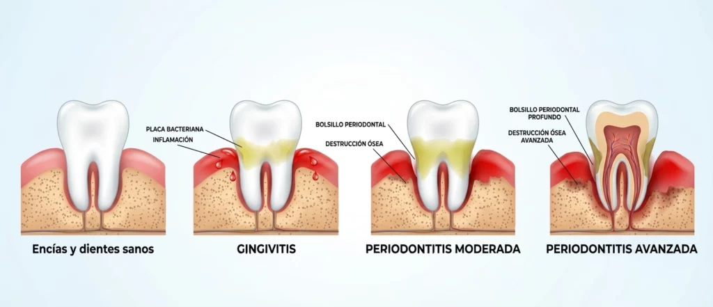 La periodontitis no es solo un problema estético: es una enfermedad inflamatoria crónica que destruye el hueso que sostiene los dientes.